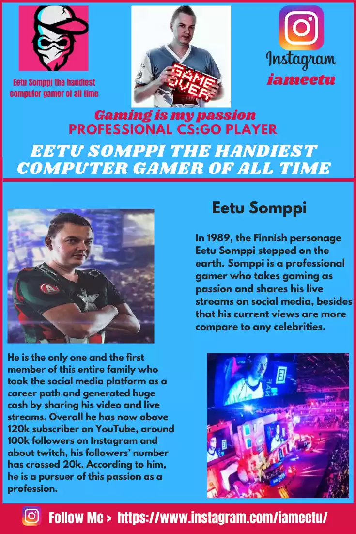 In 1989, the Finnish personage Eetu Somppi stepped on the earth. Somppi is a professional gamer who takes gaming as passion and shares his live streams on social media, besides that his current views are more compare to any celebrities. He is the only one and the first member of this entire family who took the social media platform as a career path and generated huge cash by sharing his video and live streams. Overall he has now above 120k subscribers on YouTube, around 100k followers on Instagram, and about twitch, his followers’ number has crossed 20k. According to him, he is a pursuer of this passion as a profession.